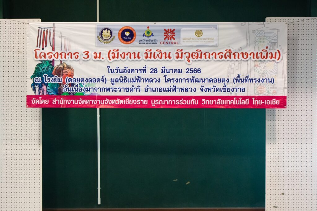 มูลนิธิแม่ฟ้าหลวง ในพระบรมราชูปถัมภ์ กับโครงการ 3ม. (มีงาน มีเงิน มีวุฒิการศึกษาเพิ่ม) โดยวิทยาลัยเทคโนโลยี ไทย-เอเซีย กรมการจัดหางาน จัดหางานจังหวัดเชียงราย สถานประกอบการ บริษัท เซ็นทรัล รีเทล คอเปอร์เรชั่น จำกัด (มหาชน) พร้อมด้วยมหาวิทยาลัยในความร่วมมือ มหาวิทยาลัยเกริก